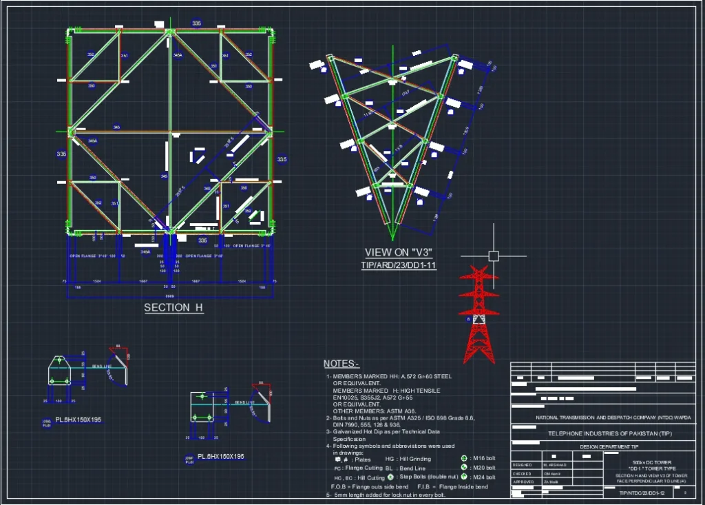 Arden Engineering’s team of skilled project managers, structural engineers, and CAD drafters are committed to delivering high-quality structural shop drawings, detail fabrication drawings and fabrication drafting services Arden Engineering’s extensive experience in design, drafting, and detailing encompasses a wide range of steel structures, includuing 11KV, 132KV, 220KV and 500KV transmission line towers. Our team of CAD technicians uses advanced software to produce high-quality shop drawings that go beyond standard construction documents, facilitating smoother project execution and approval processes. Our services include Structural Steel Shop Drawings, Erection Drawings, Miscellaneous Steel Detailing, and more.